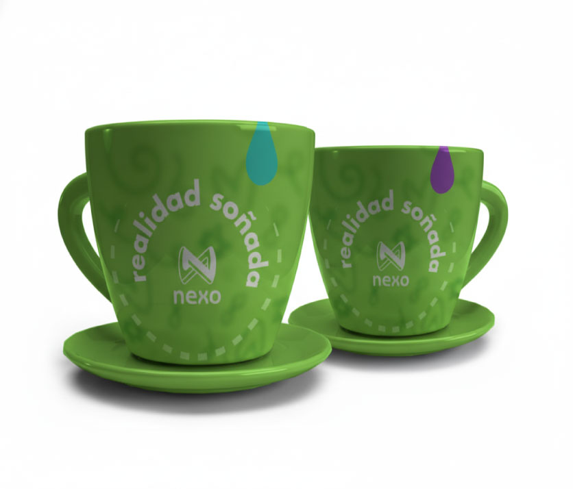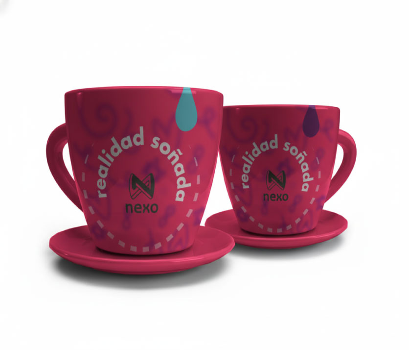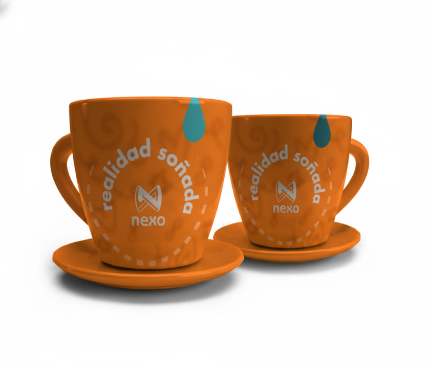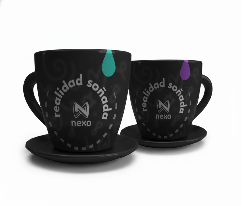 IDEAL PARA CAFÉ, TÉ O BEBIDAS CALIENTES, REPRESENTA EL UNIVERSO VISUAL DE NEXO EN CADA DETALLE.