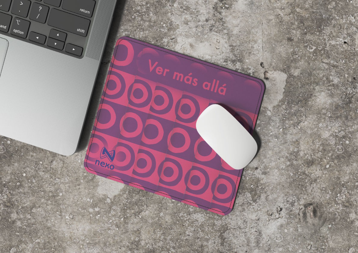 EL MOUSE PAD NEXO “VER MÁS ALLÁ” COMBINA UNA SUPERFICIE SUAVE DE ALTA PRECISIÓN CON UN DISEÑO ÚNICO QUE REFLEJA EL UNIVERSO CREATIVO DE LA AGENCIA.